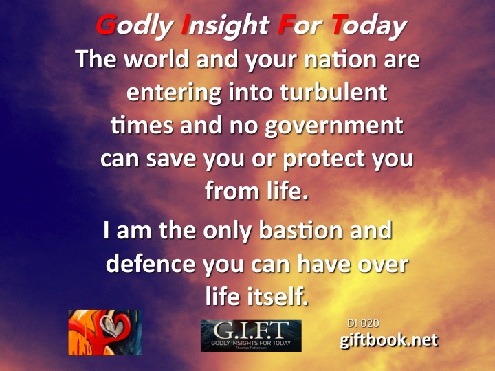 The world and your nation are entering into turbiulent times and no government can save you or protect you from life. I am the only bastion and defense you can have over life itself!