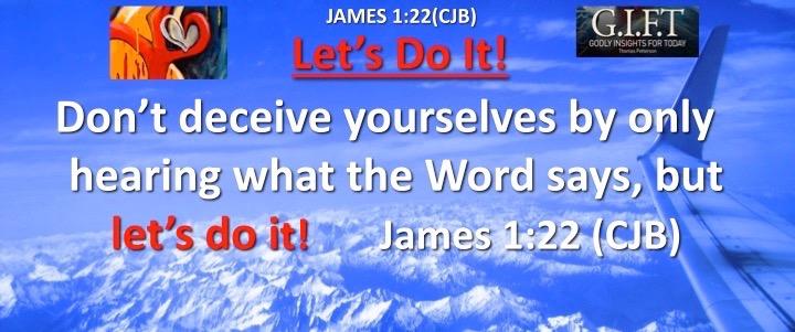 Don’t deceive yourselves by only hearing what the Word says, but LET’S DO IT! James 1:22 (CJB)