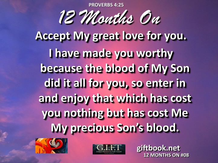 Click on BUY NOW to purchase you own G.I.F.T. Godly Insights For Today EBook. Accept My great love for you. I have made you worthy because the the blood of My Son did it all for you; so enter in and enjoy that which has cost you nothing, but cost […]
